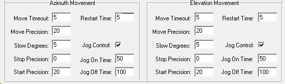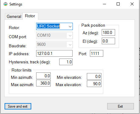 The Rotor selection must be 'URC Socket'. COM Port and Baudrate are not used. IP address is the address of the computer that DrzTrack is running on. Normally that will be the same computer that SkyScanner is on, so you can just use 127.0.0.1 as shown to the left. Hysteresis controls how close to each heading your antenna must be before SkyScanner considers it to be there. For most situations 2 degrees should be good. However it is important to make sure that SkyScanners hysteresis is not greater than that of DrzTrack. Otherwise DrzTrack will decide that the antenna is correctly positioned while SkyScanner is still waiting for it to get there. This results in SkyScanner waiting forever (until you stop it from scanning). See next pane for details. Make sure the port is set to 1111 and you are done. DrzTrack will now send antenna position to SkyScanner, and will move the antenna to the positions that SkyScanner requests. Normally DrzTrack and SkyScanner interoperate well, but if they lose communication with each other, you may have to stop both and then restart both to get them working again. Usually it is best to start DrzTrack first. It will then be watching for messages from SkyScanner. You can tell if they are communicating because SkyScanner will show the current antenna positions. Be sure to look at Carsten (OZ9AAR)'s web site for more detail on using SkyScanner.
