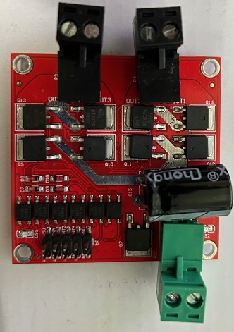 H-Bridge instead of relays to control the motors. An H-bridge is a device that controls the speed and direction of a DC motor, by routing current in opposite directions. It allows low-power control signals from the controller to drive higher-power motors. They also can use Pulse Width Modulation (PWM) for speed control, and include diodes to protect against inductive kickback. The CT-2 controller will work with certain types of H-Bridges and by using the jogging feature, true PWM speed control can be realized. When selecting an H-Bridge to use with the CT-2, several factors need to be considered: